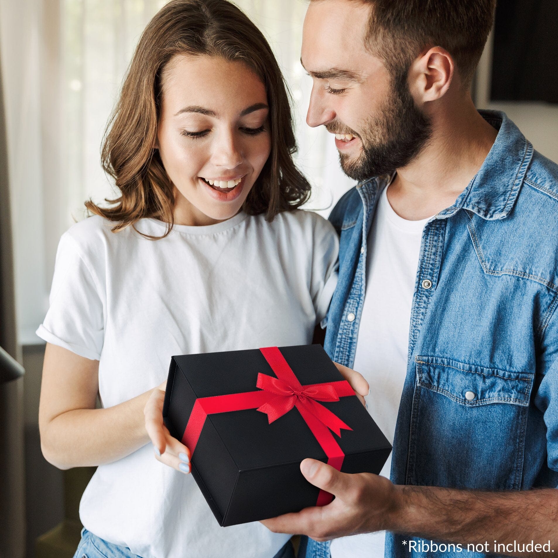Prime Line Packaging's unprinted black 10x10x5 collapsible magnetic closure gift boxes are the perfect option for packing, storing, organizing, displaying, and presenting a wide variety of personal and professional needs. Crafted from a durable 1,200 GSM art board wrapped in premium 157 GSM matte laminated paper, each high-quality gift box comes equipped with two extra strong magnet closures seamlessly incorporated into the lid to ensure its contents stay safe and secure. When not in use, each magnetic gift box can conveniently fold flat for easy, compact out of the way storage. Black gift boxes are a perfect, high quality, reusable and practical alternative to traditional shopping bags and gift bags. Prime Line Packaging’s 10x10x5 black gift boxes are highly versatile in being able to act as gift boxes for birthdays, parties, holidays and events to merchandise boxes for apparel, jewelry, accessories and more. Unprinted boxes are perfect for gifting, home organization, or retail needs alike, and can be used to uniformly store a wide variety of items. Coming in large bulk packs, you can always have a box on hand for your small business or event and have enough boxes on hand to create bridesmaid or groomsman proposal boxes for your special day. For the creative spirit or the small business owner, these boxes can be customized in a wide variety of ways, serving as a blank canvas to embellish with your businesses’ logo or tailor to your own liking with non-heat transferrable vinyl, stickers, markers, paints, stamps and more. A sophisticated and elegant touch can be added with ribbon and bows to finish the look. Magnetic boxes serve as a unique and memorable reusable alternative to gift or shopping bags and are a popular choice amongst retailers large and small, event planners, and individuals for gift giving and storage. Keep your goods safe and secure with Prime Line Packaging’s reusable black magnetic closure boxes for any of your needs.